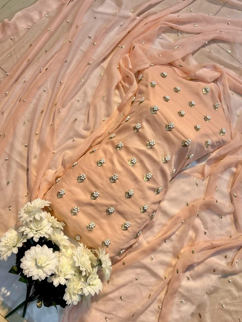 7 Pearls Luxury Soft Chiffon Unstitched 3-piece- Elegant Formal Collection (Peach)