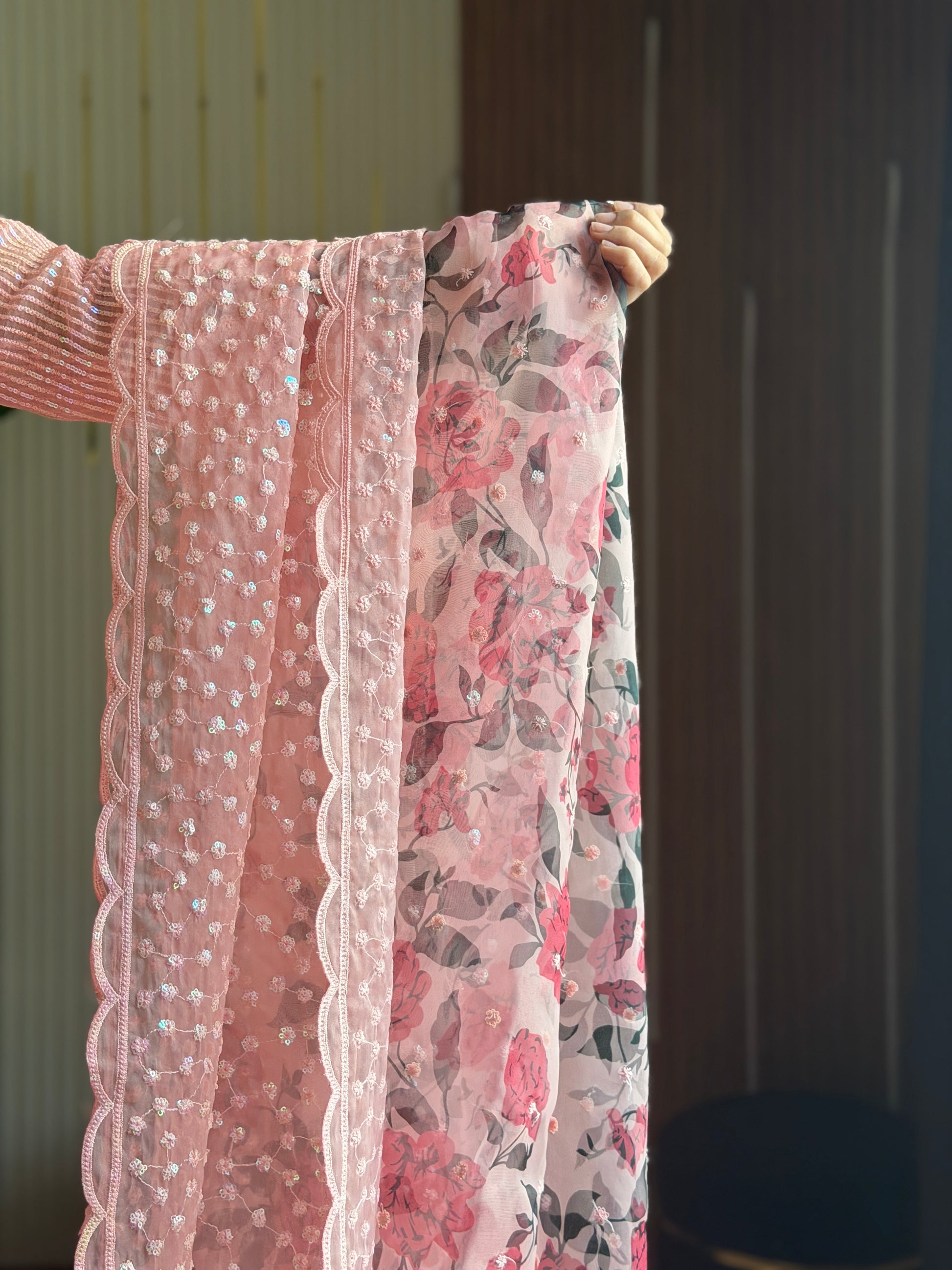 Heavy Sequence Embroidered Organza Dupatta With digital print and Adda work
