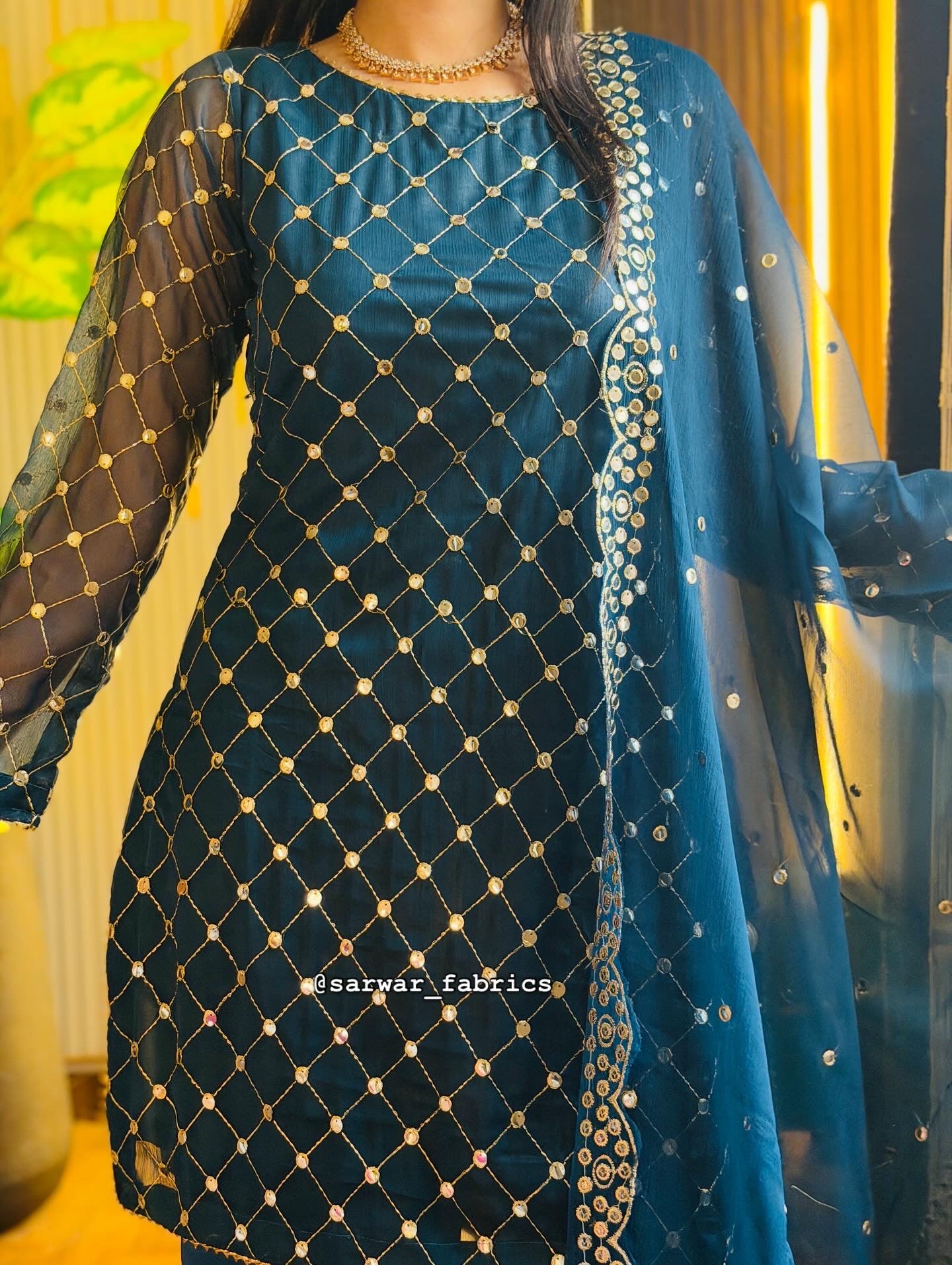 “Hiba Bukhari Inspired Chiffon 3pcs – Luxury embroidery, premium chiffon, and timeless elegance in every detail. Unstitched & ready for your perfect fit – limited stock, order today!”