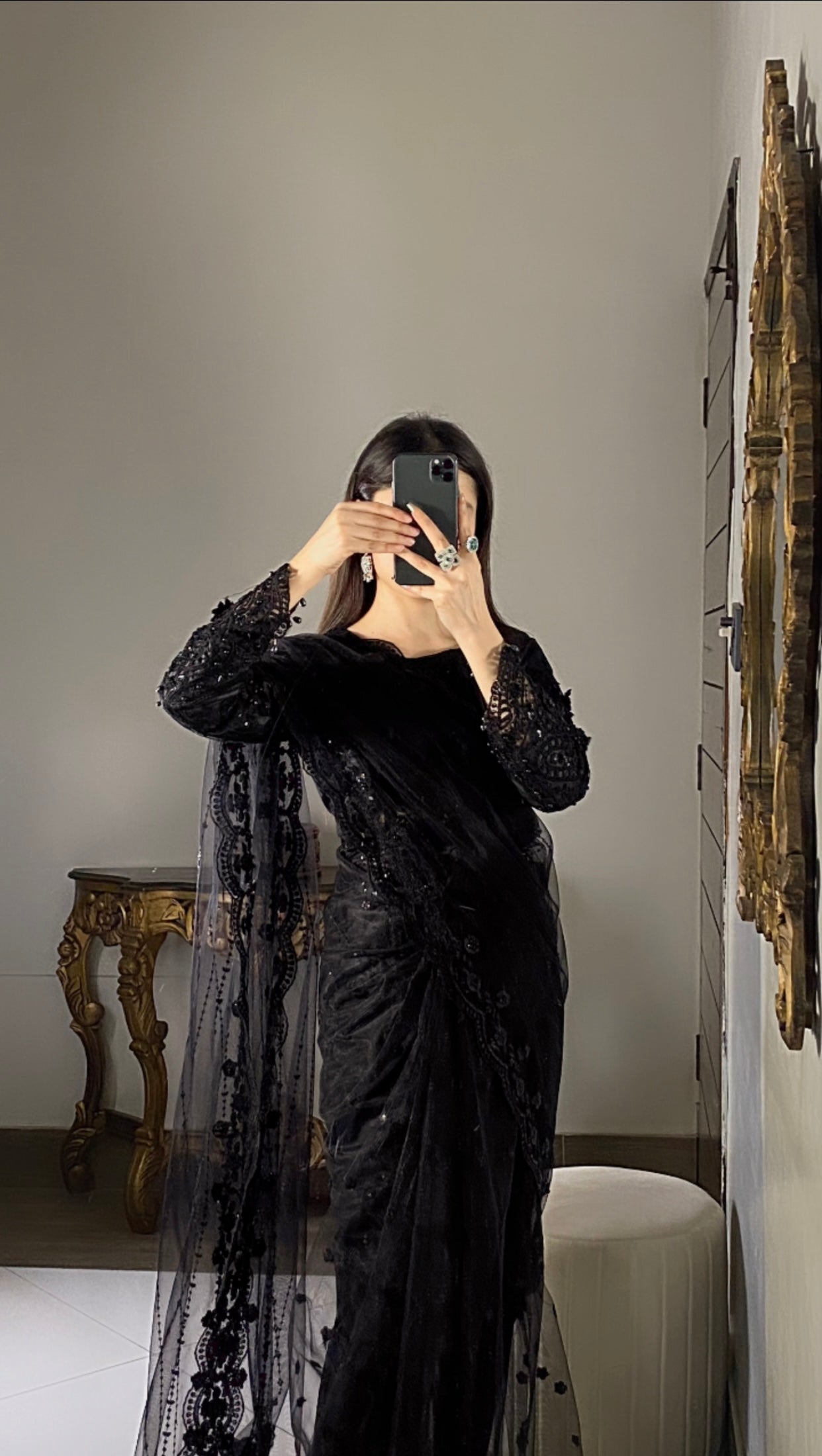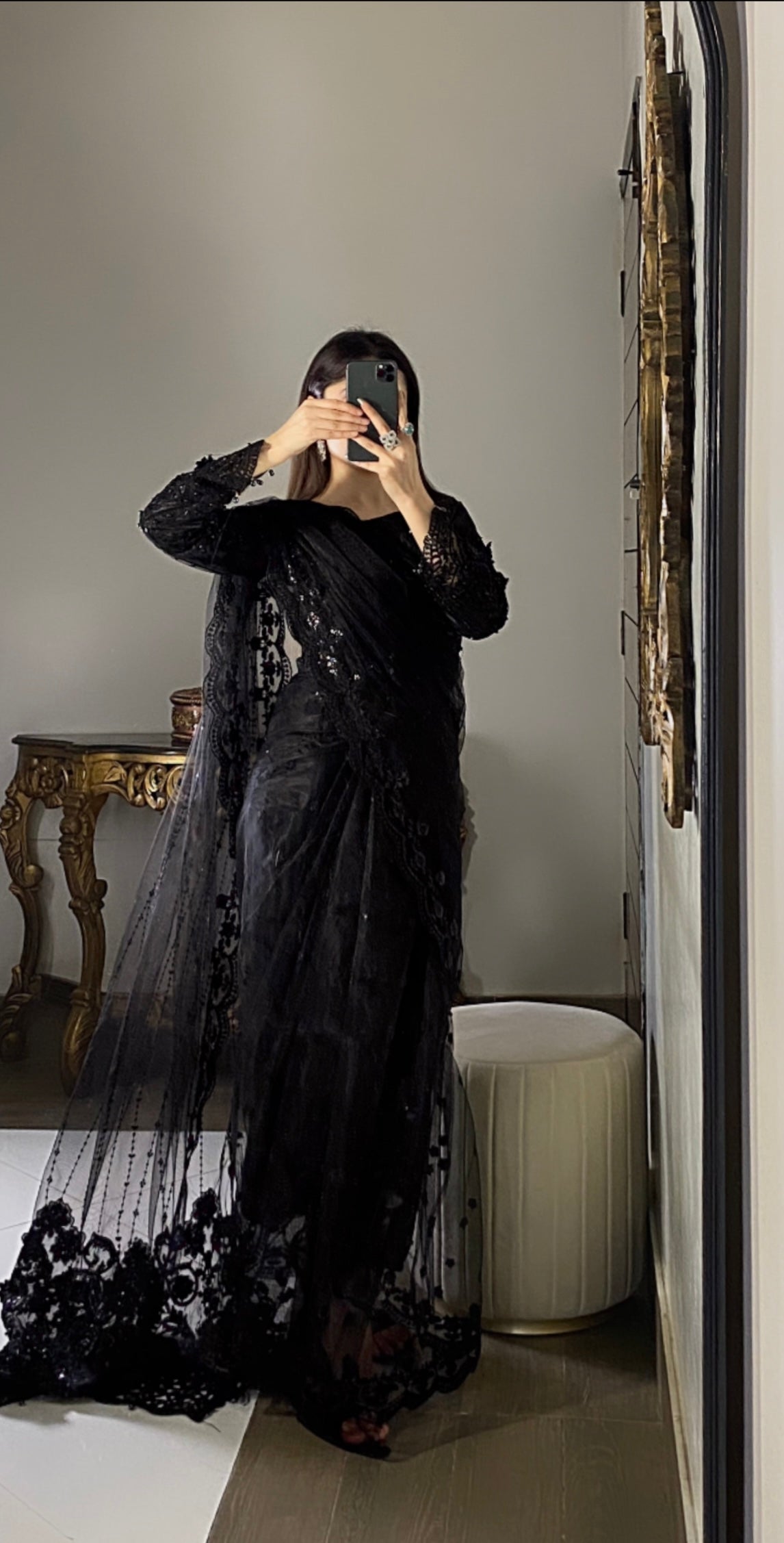 Luxury Black Fancy Embroidered Saree (EID COLLECTION 2026)