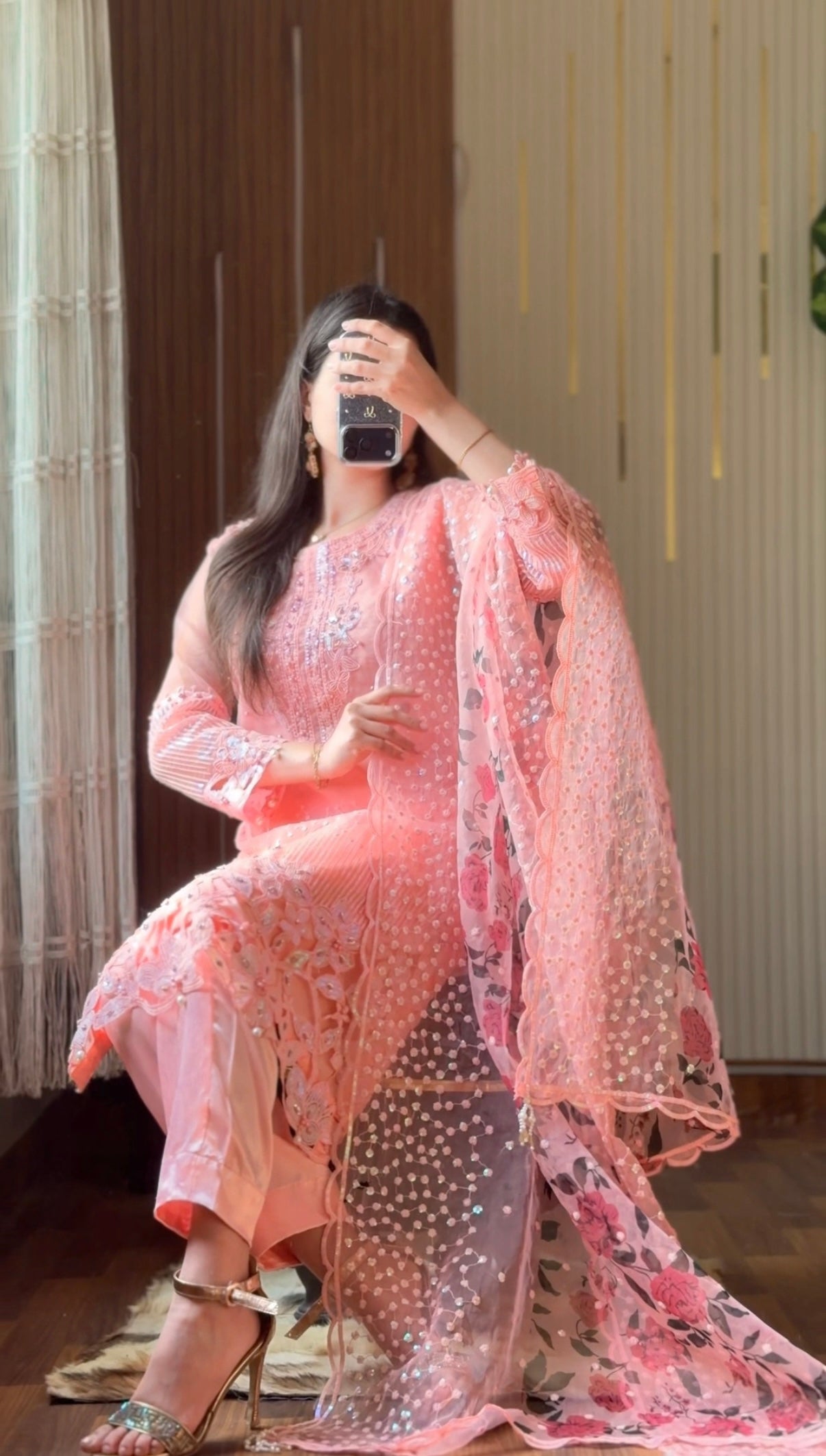 Heavy Sequence Embroidered Organza Front with Daman laser cutwork ,Hand embellishments & Adda work